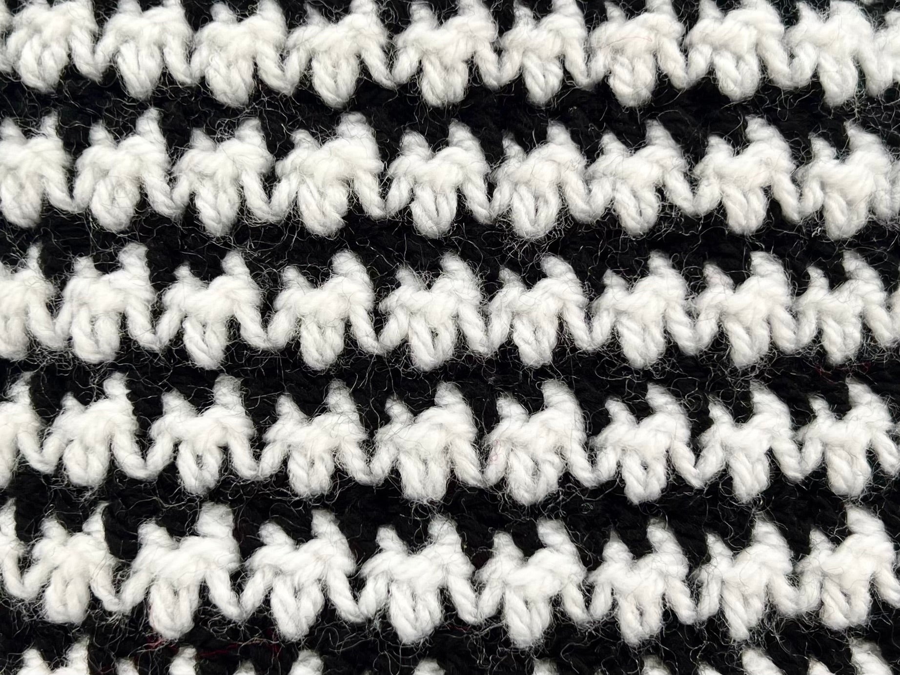 Crochet houndstooth earflap cap with built in fuzzy rose earmuffs